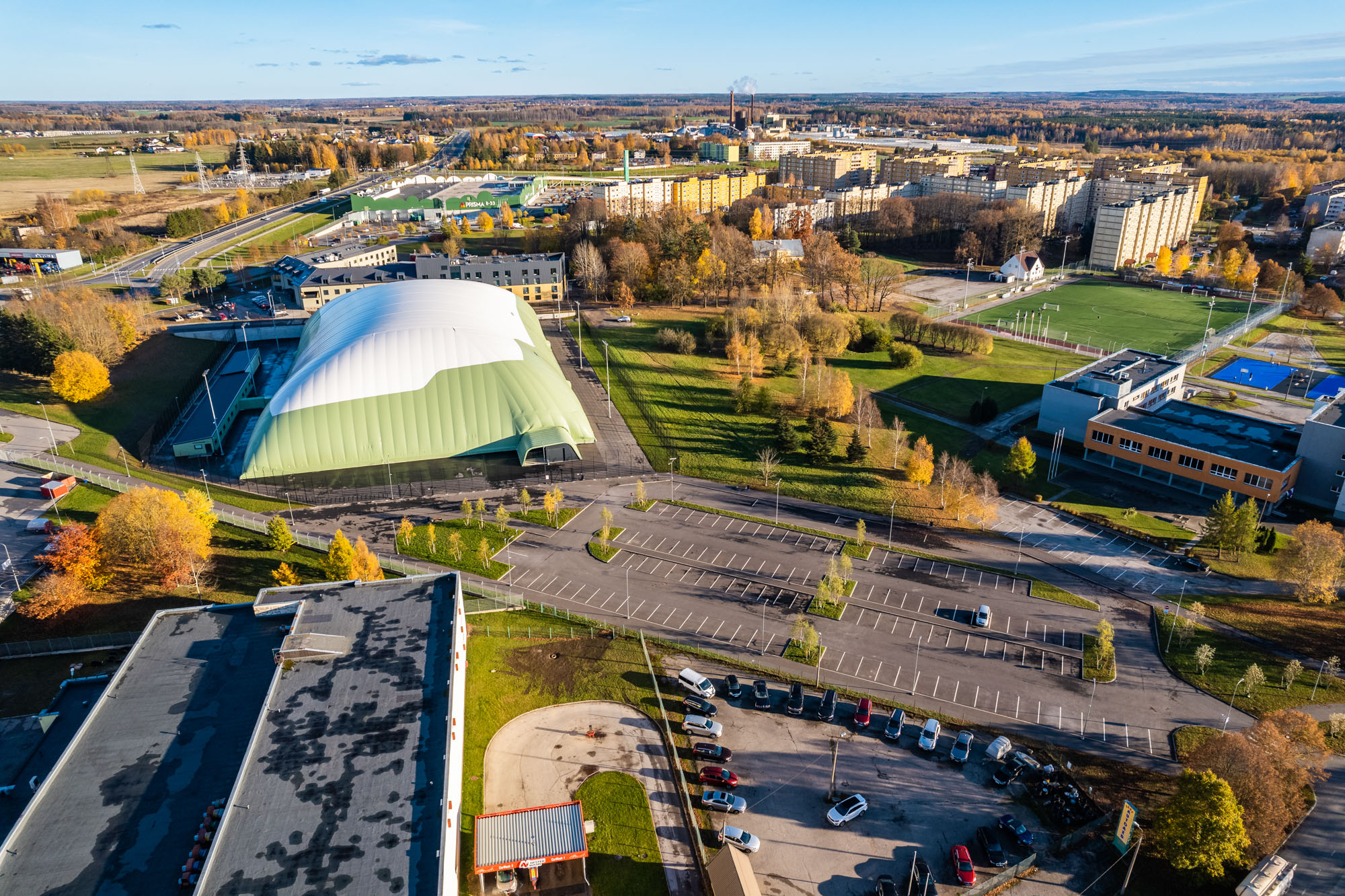The assignment was to build a football pitch with artificial grass cover, including changing rooms and necessary communications and structures.