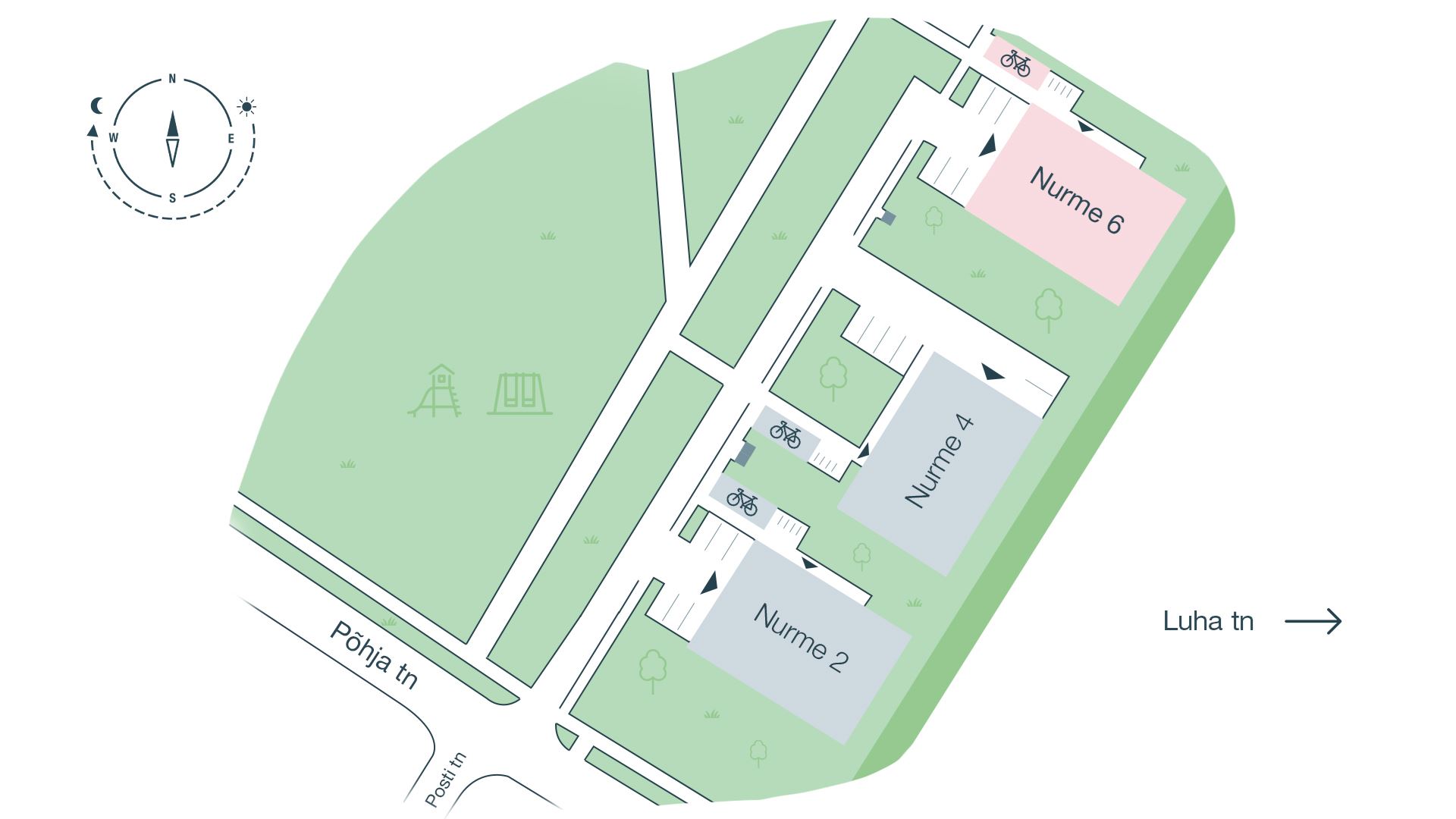 As a resident of the new buildings on Nurme Street, you can leave your vehicle safely in the car park – we have created the perfect conditions for you to run your daily errands on a bike. We will build a bike station with colourful green roofs for each building. Additionally, there is going to be an outdoor bike park in the courtyard to provide your guests with a safe parking place for their two-wheelers.