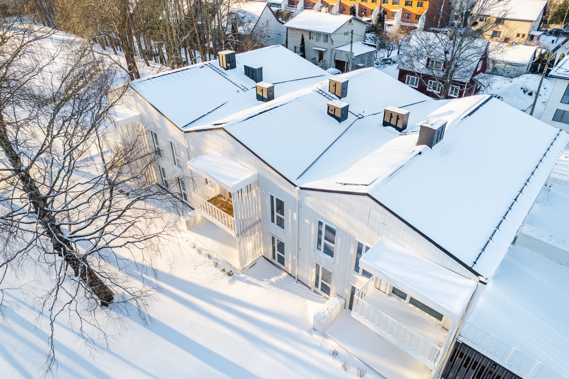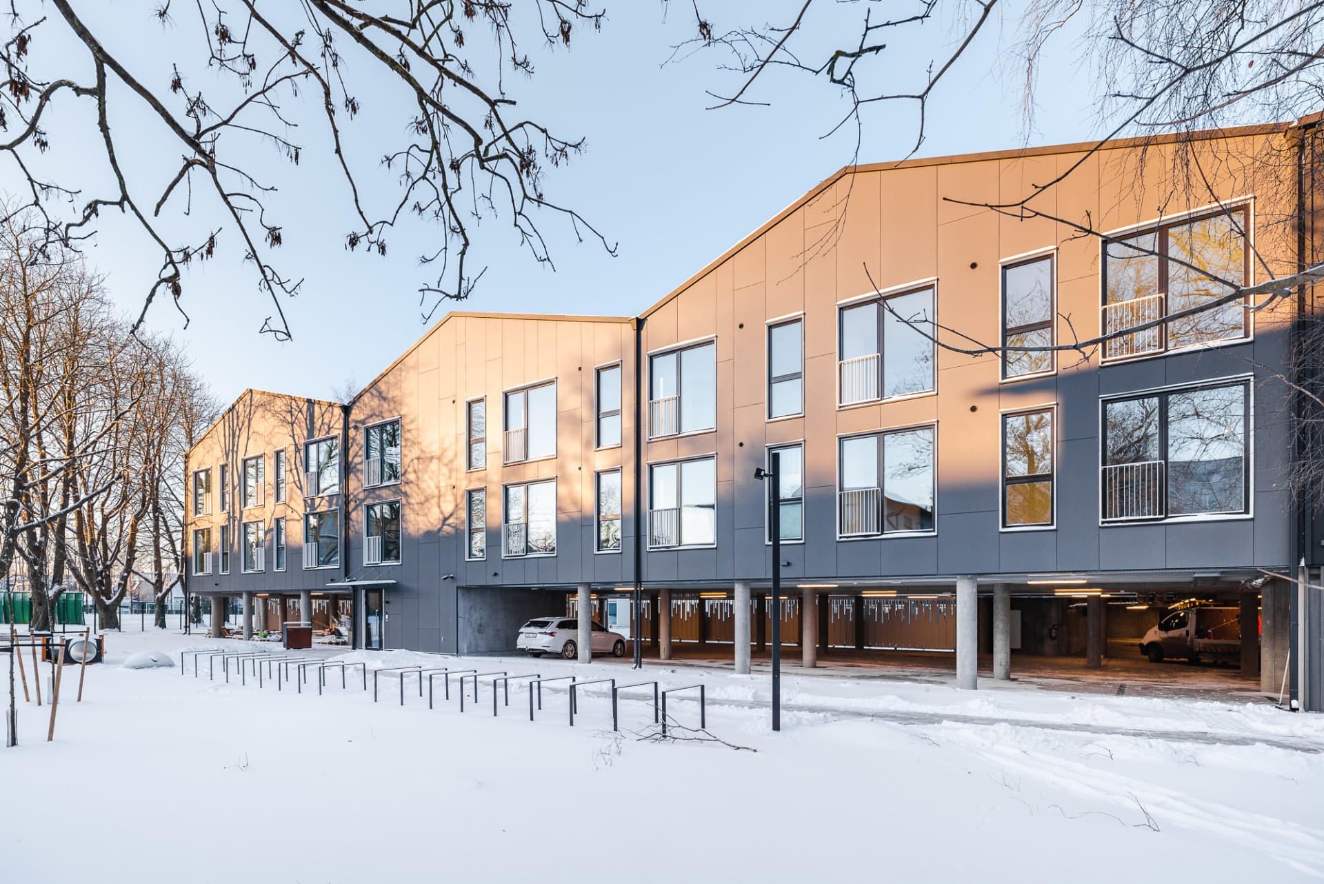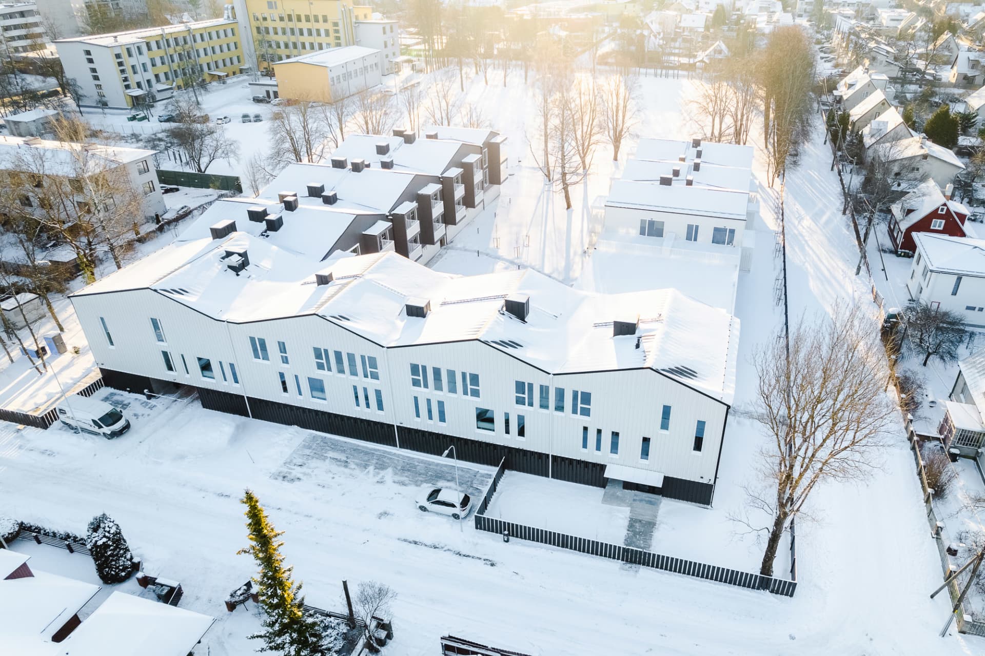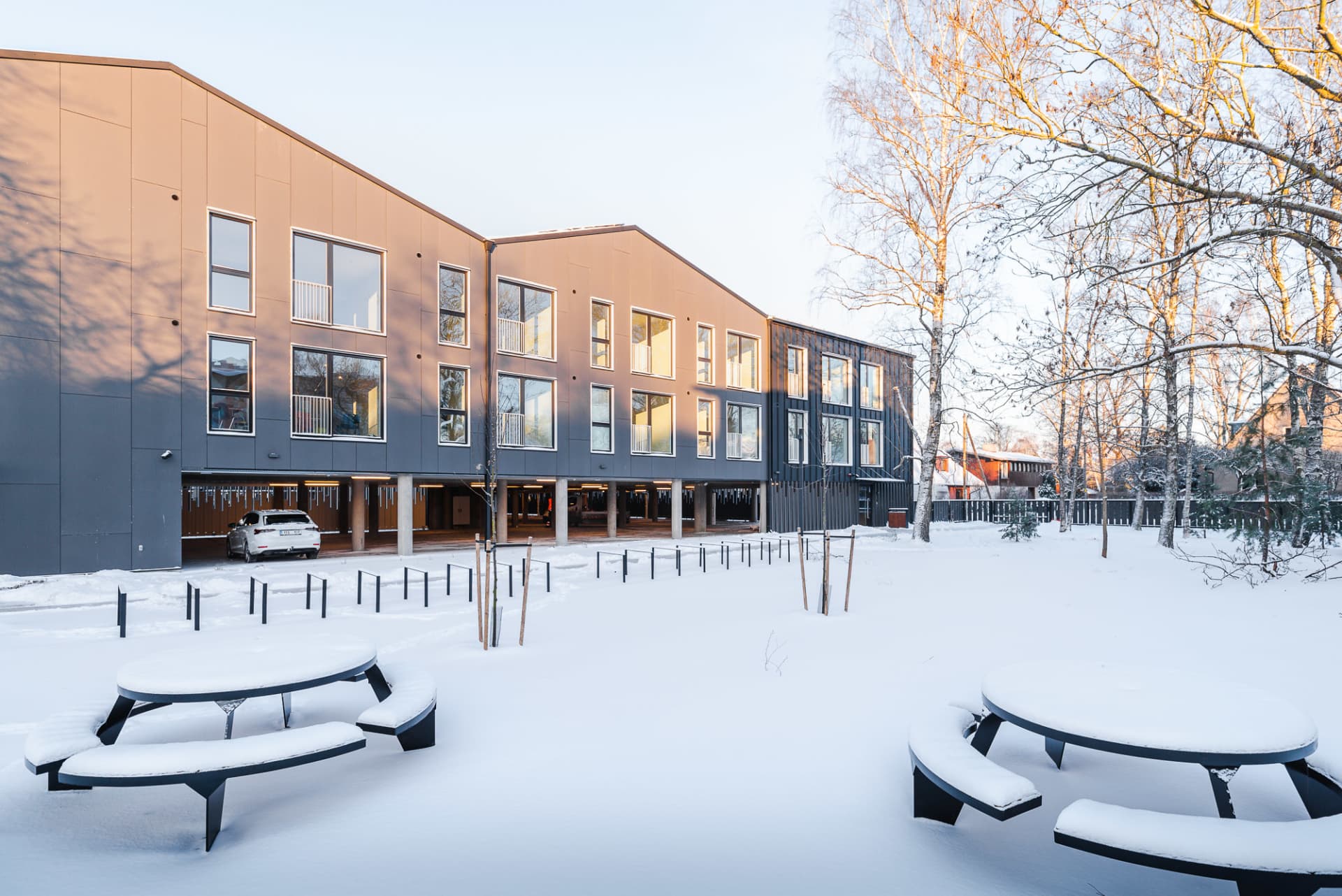 Our modern development with stylish architecture is located at the heart of the Kristiine green suburb, away from the glass towers and noisy traffic of the city centre. At the same time, schools and kindergartens, shopping centres, sports facilities, health services, entertainment venues and everything else you need in life are all just a short stroll or a couple of bus stops away.