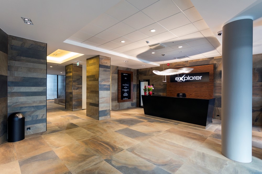 Explorer paistab silma ka ainulaadse fassaadilahenduse poolest. Kõiki seinu katavad LED-paneelid, mis võimaldavad kuvada 360 kraadi ulatuses nii staatilist kui liikuvat pilti. Nii on kogu hoone fassaadi võimalik kasutada suure ekraanina.