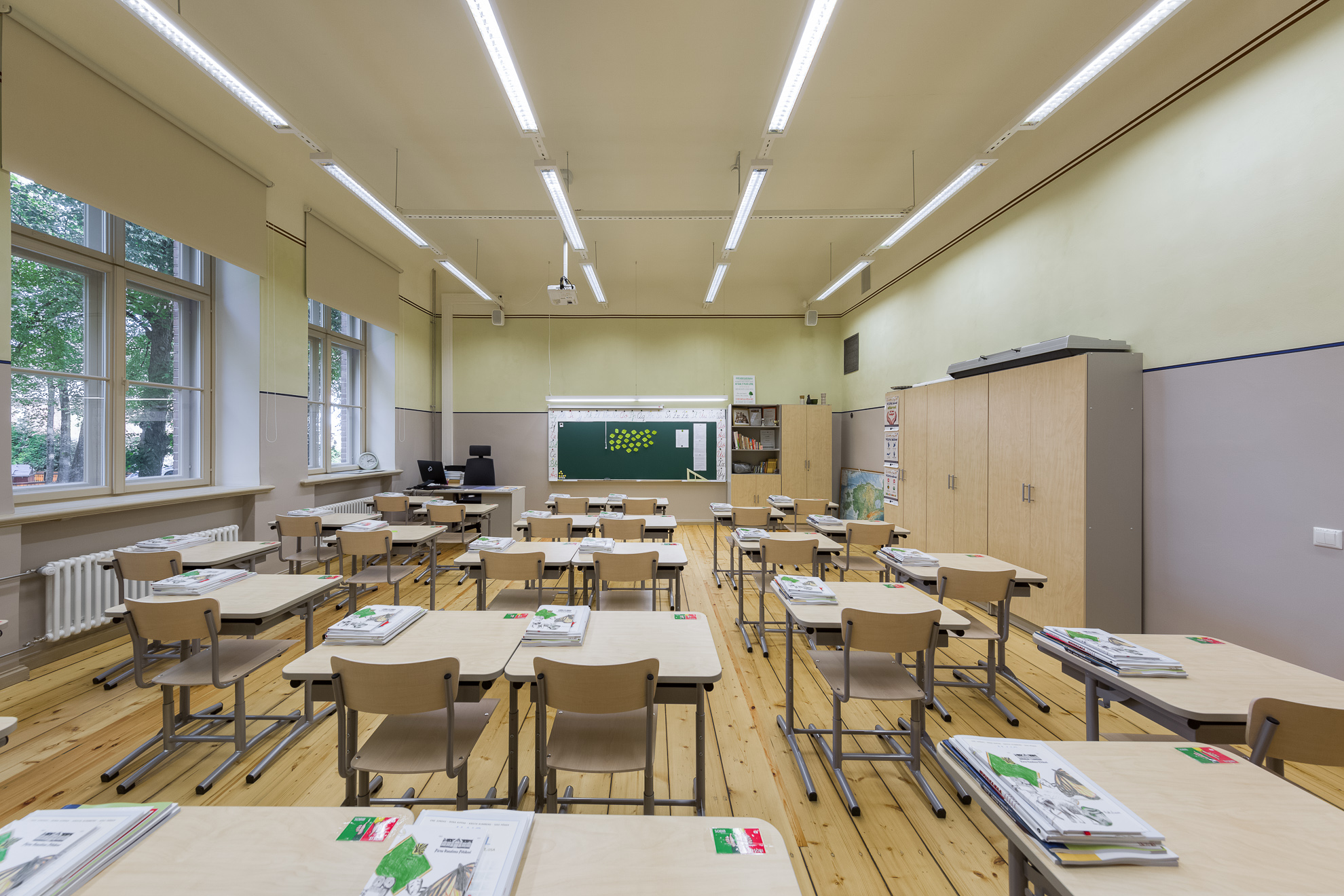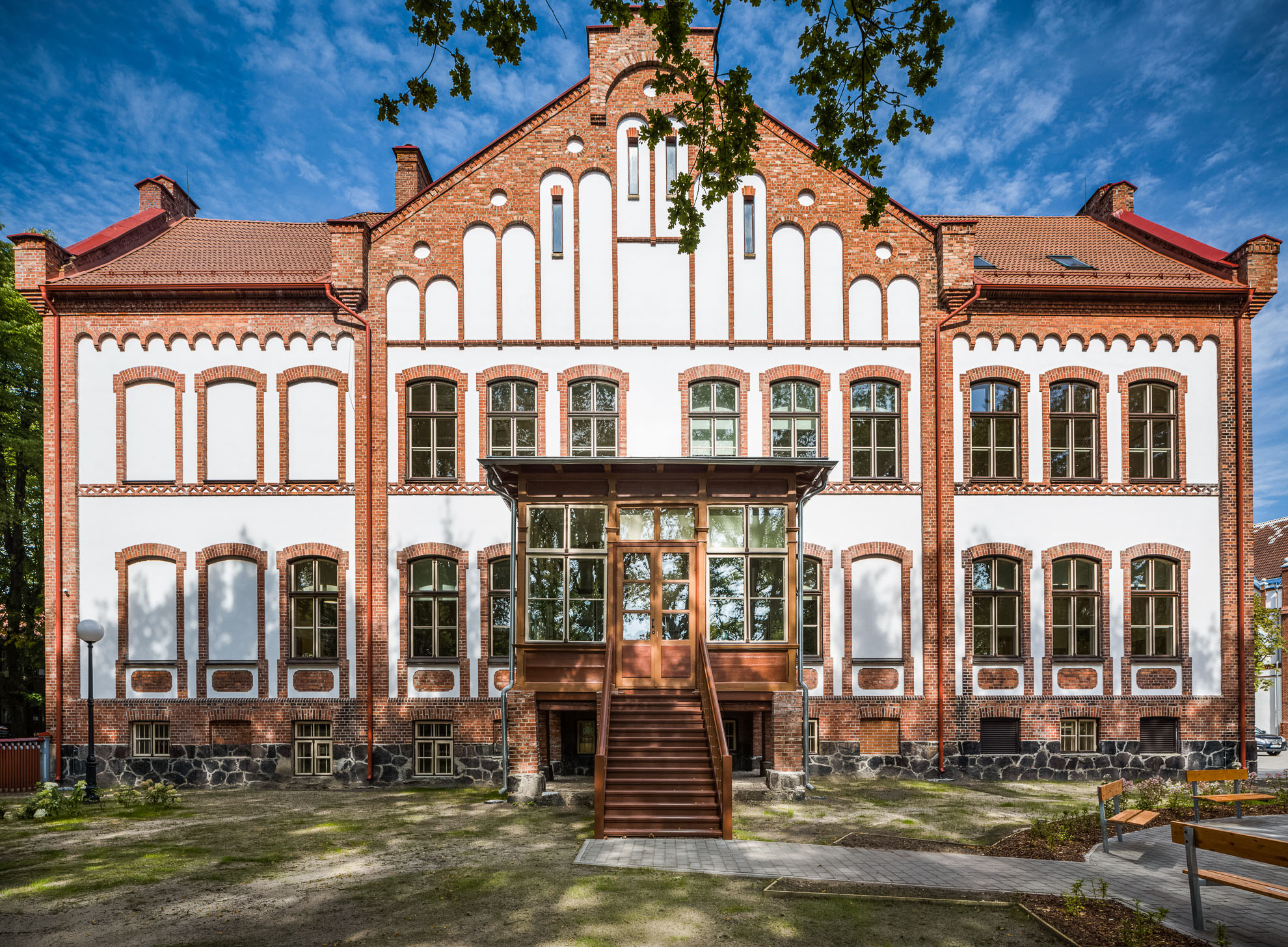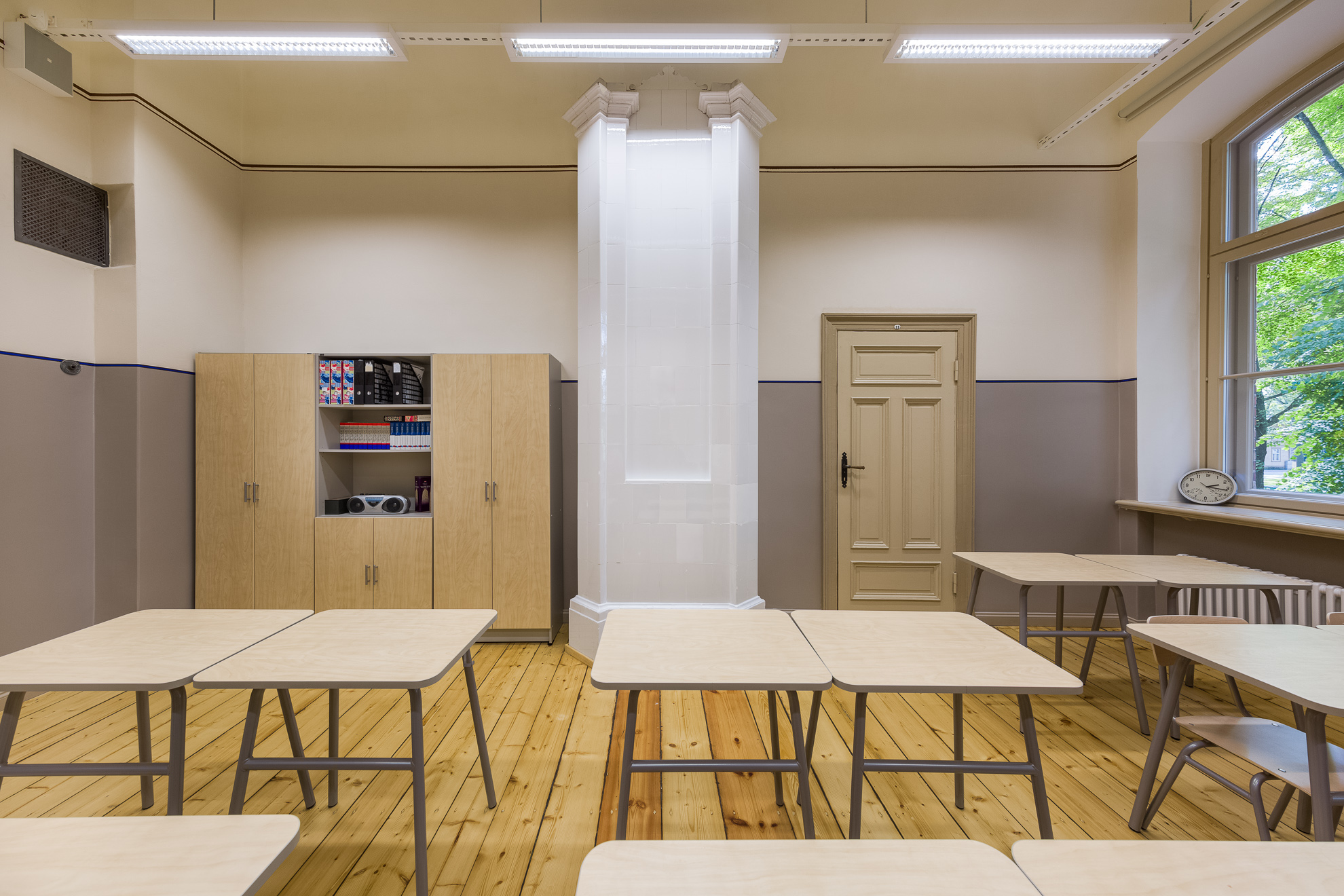 Hoonetel vahetati välja uksed ja aknad, mis osaliselt restaureeriti. Klassi- ja olmeruumidesse rajati uued tehnosüsteemid, mille väljaehitust raskendas vanade auruküttelõõride paiknemine. Osaliselt säilitati klassiruumides autentsed laudpõrandad, seinad ja laed värviti üle ajastule kohase lubivärvidega. Fassaaditööde käigus vahetati välja hulgaliselt lagunenud hoone frontoonidest tellismüüritist. Parandati koolihoone omaaegsed korstnad. Uue ilme sai ka koolikompleksi kuuluv ajalooline võimlahoone, kus, nagu koolimajaski, on säilitatud palju originaaldetaile.