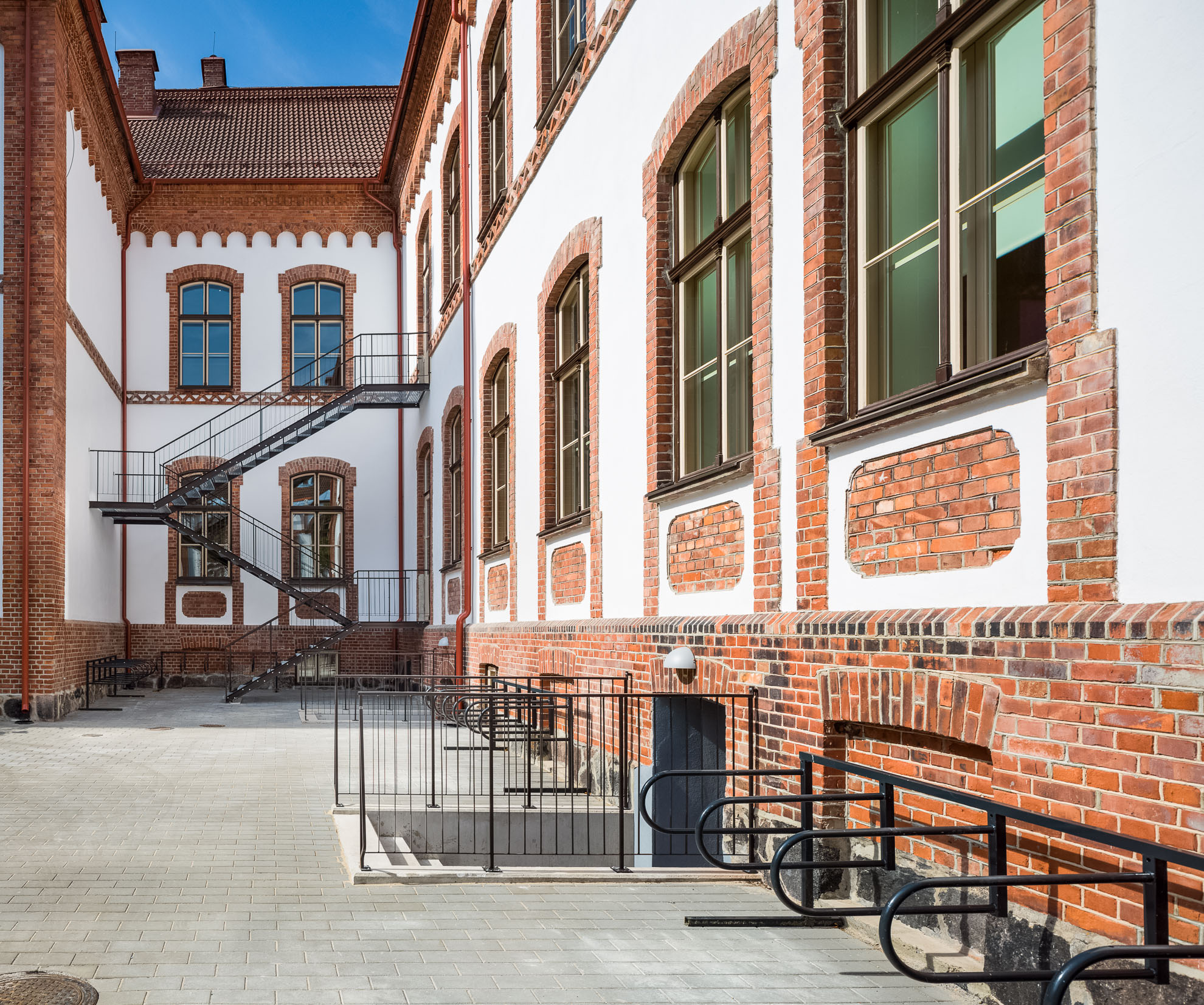 Muinsuskaitse all olevatel hoonetel pidi ehitaja säilitama hoonete ajaloolise ilme, aga samas ta pidi mahutama siia majja kõik selle, mis on kaasaegseks õpi- ja töökesskonnaks vajalik, samamoodi kõik erinevad tehnosüsteemid.