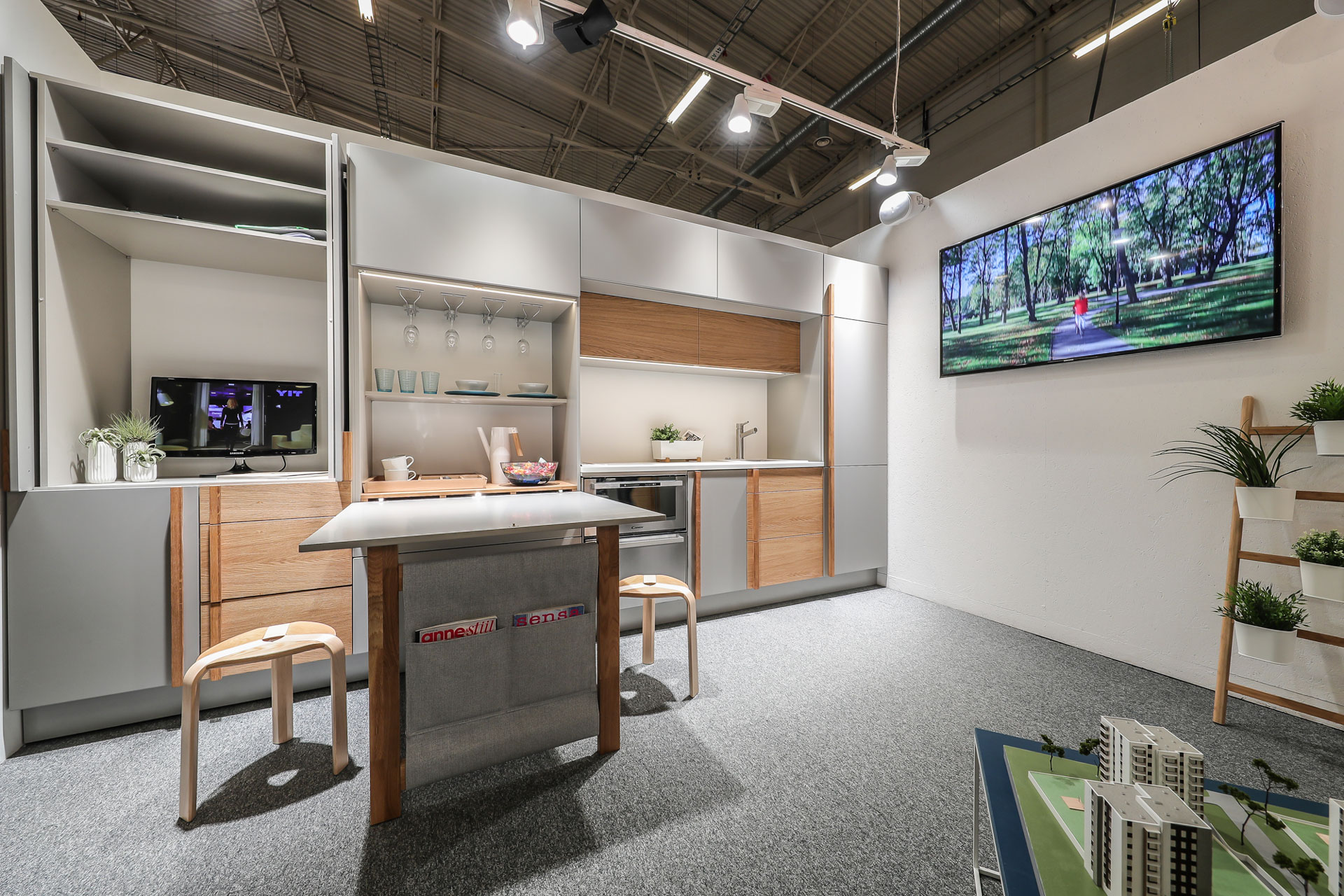 YIT sisekujundaja Greete Mätase sõnul saab ühetoalisesse funktsionaalsesse korterisse paigutada kõik vajaliku ära, jättes kodu puhtaks ja stiilseks. “Sellise lahenduse mõte on, et kodu mõjuks kaasaegselt ja modernselt,” rääkis Mätas. Et mugav madratsiga voodi võtab palju ruumi, on voodi ehitatud selliselt, et saab peale magamist lükata seina sisse ja alt avaneb hoopis diivan. Söögilaua saab peale kasutamist klapina üles lükata ja ruum jääb avar. Ka teleri ja muu tehnika saab kavalalt külgliuguste taha peita. Kompaktses garderoobis saab peegli vajadusel välja tõmmata.