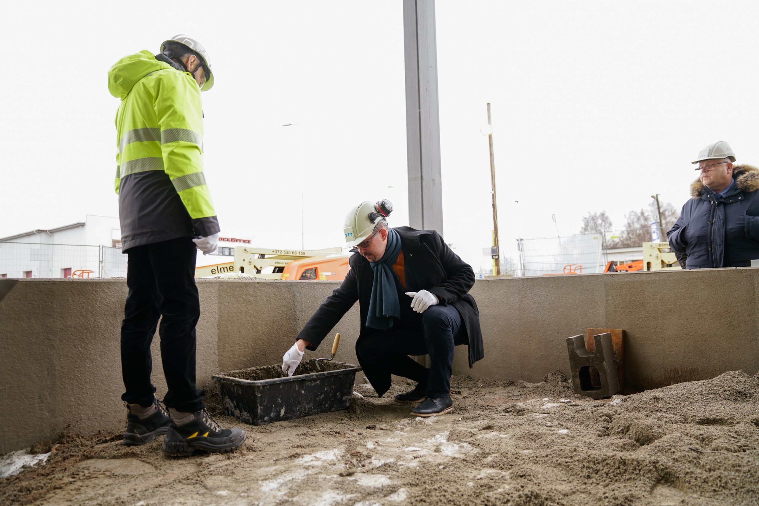 Uue hoone nurgakivi panid paika YIT Ehituse juhatuse esimees Margus Põim, YIT Ehituse arenduse projektijuht Indrek Jakobson, YIT projektijuht Rigo Rebane ja Rae valla abivallavanem Priit Põldmäe. Sümboolsesse ajakapslisse asetati ajaleht Äripäev, värske ajakiri Autoleht, väljavõte ehitusloast, hoone eskiisid ning valla esindaja poolt õnnetoov 10-eurone käibelolev rahatäht.