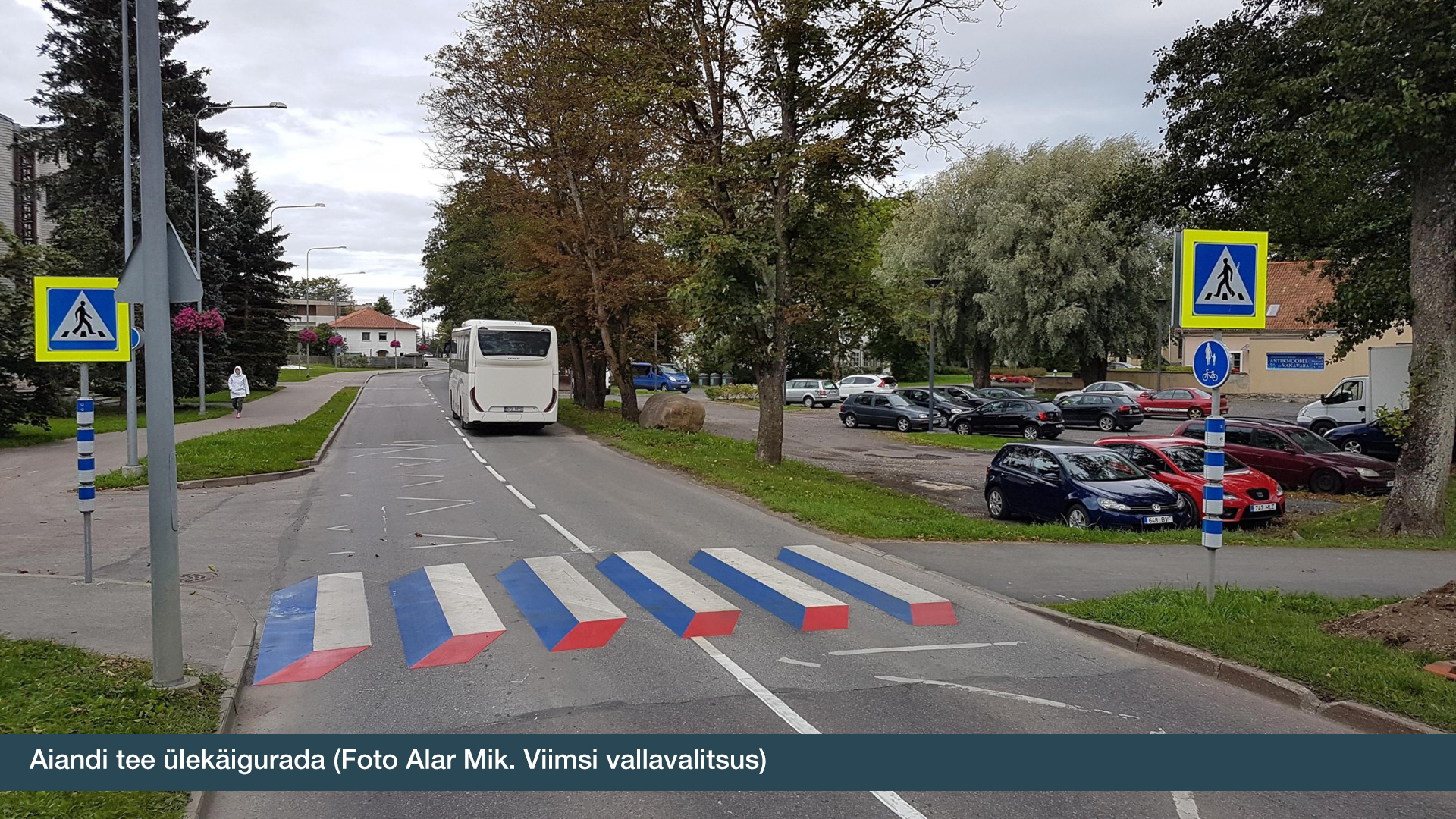 Aiandi tee tahukatega ülekäigurada tõmbab lisaks veel täiendavalt tähelepanu tänu kasutatud värvidele. Vallavalitsus testib erinevaid 3D vöötraja- ja teekattemärgiste lahendusi, lähiajal lisandub neid veel.