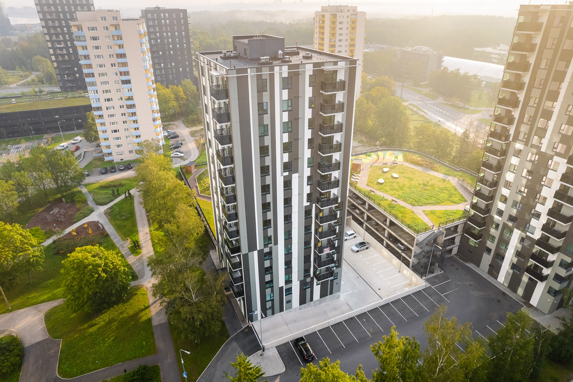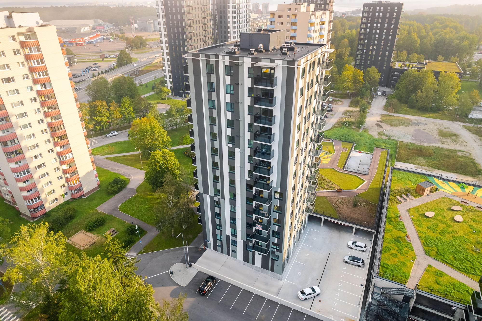 Korterelamu koos parkimismajaga Õismäel. 14 korrust, 70 korterit.