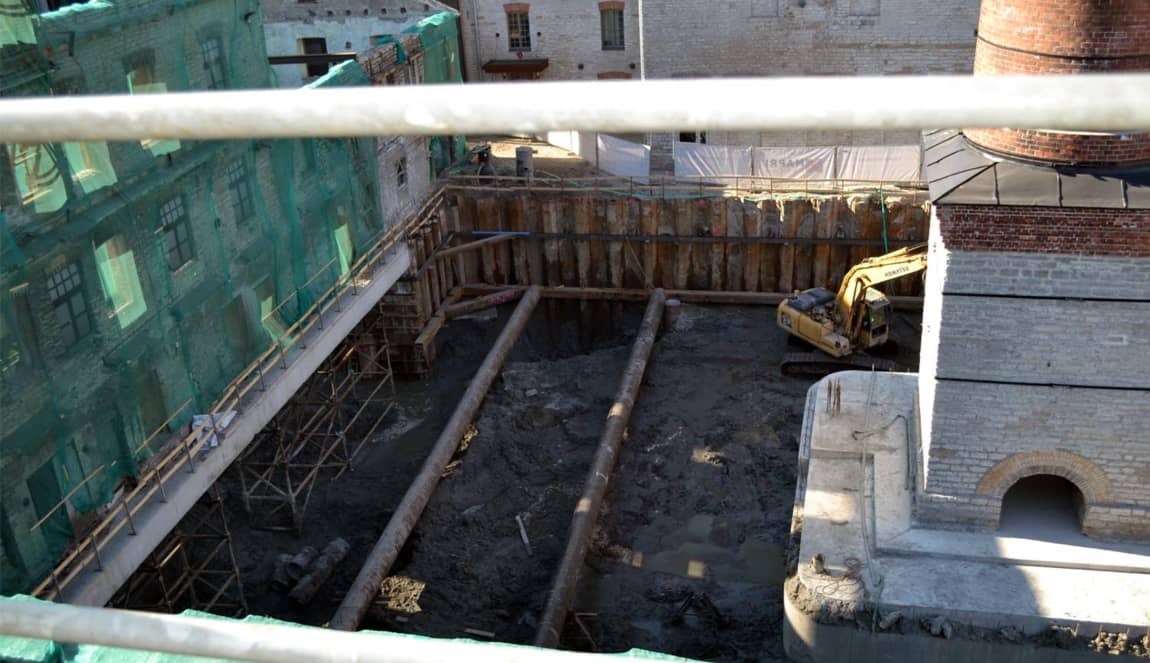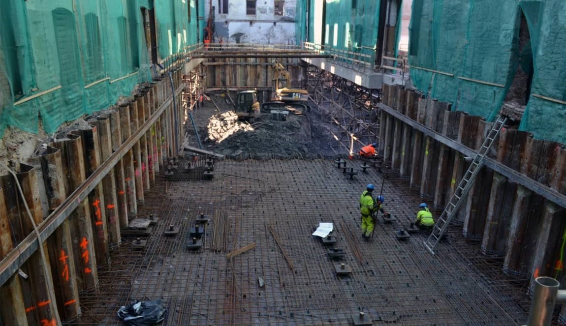 Meie inseneride erioskusi läks vaja kahe tasandilise maa-aluse parkla rajamisel nõrga pinnase ja õrna ajaloolise struktuuriga pärandväärtusega kohas. Parkla rajati samal ajal, kui selle kohale ehitati kolm uut äri-, kontori- ja eluhoonet, üks neist vana päästetud hoone müüride vahele .
