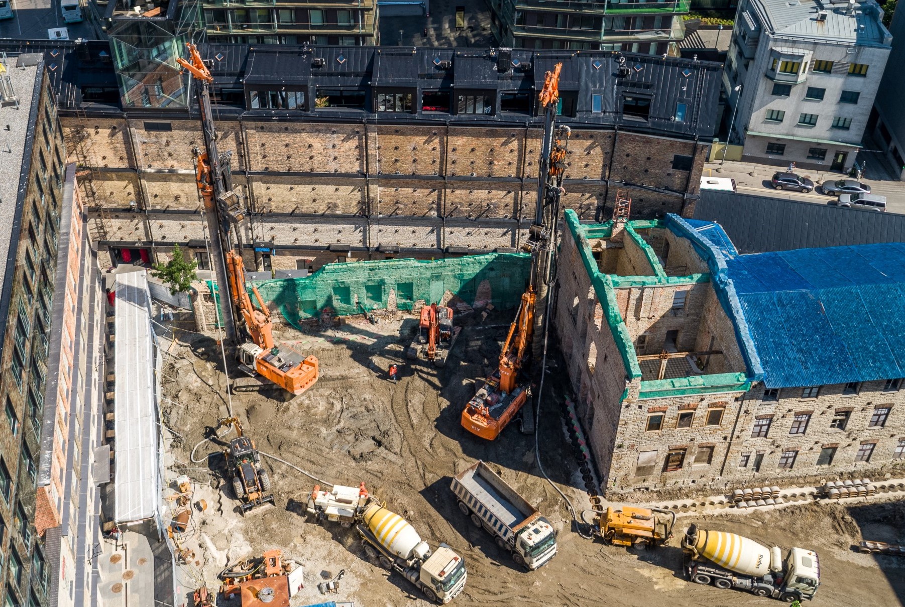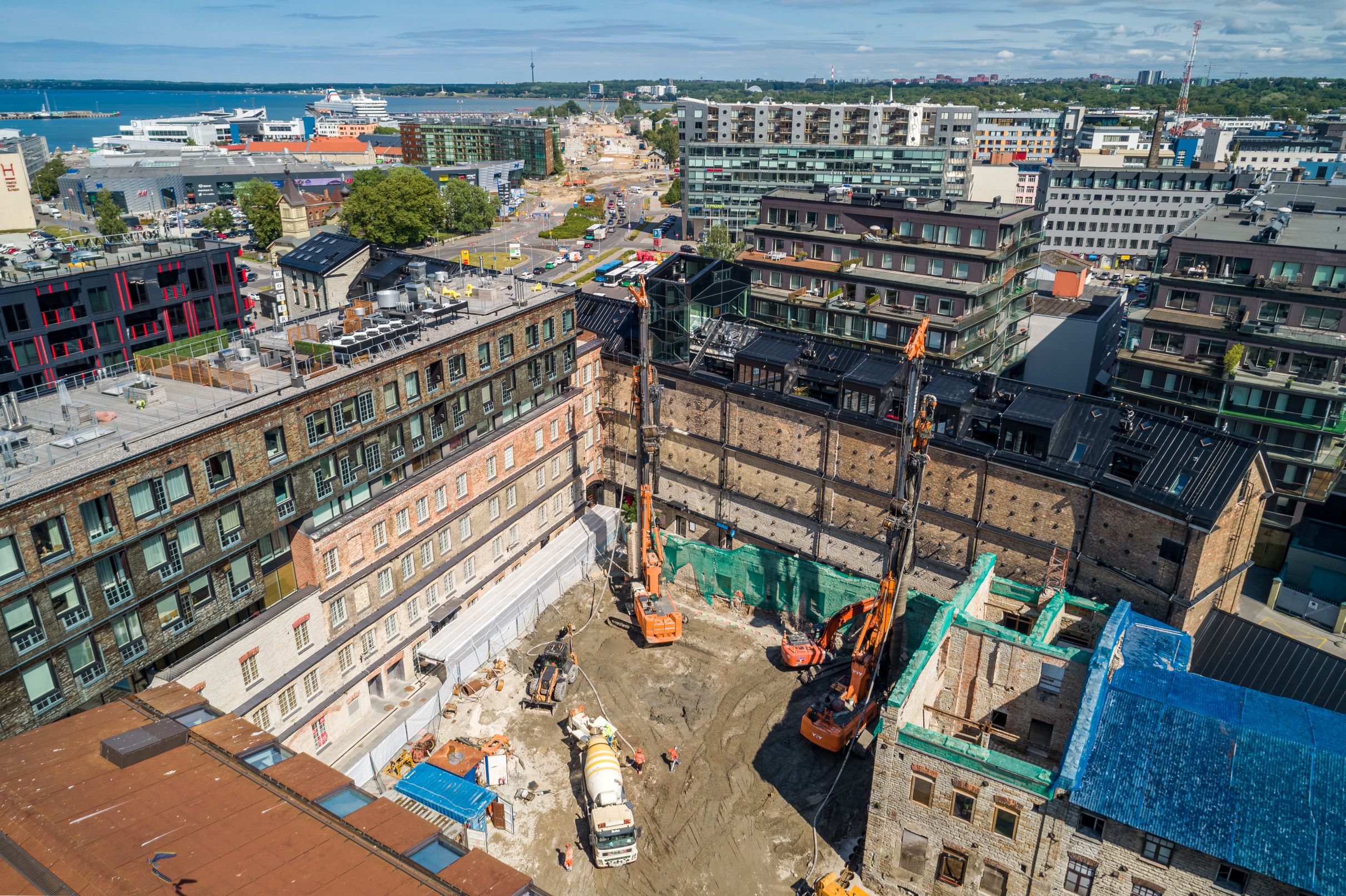 Rotermanni 6 toimistorakennuksen montun tukiseinien rakentaminen