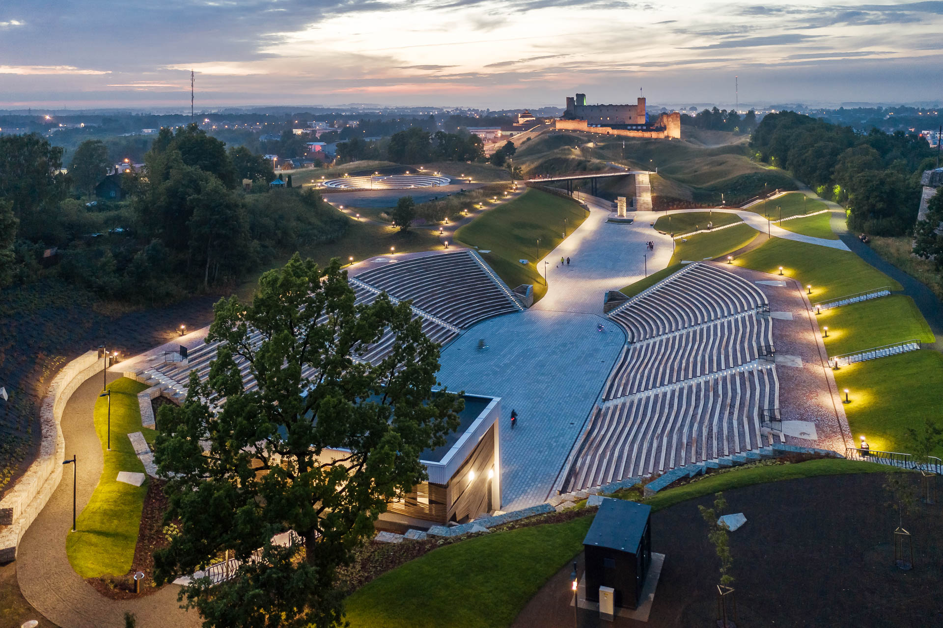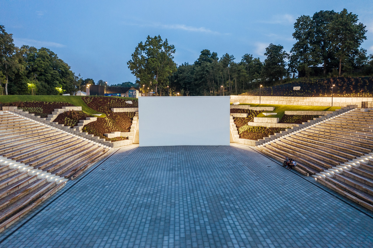 Центр под открытым небом объединил в себе две концертные площадки. Высококлассная основная сцена с 4200 зрительскими местами и площадка для форумов на 800 зрительских мест. При необходимости основная сцена позволяет установить в партере 1500 дополнительных зрительских мест.